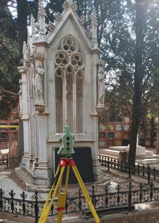 Monitoramento de cemitérios em Barcelona - Espanha: 8 unidades monitoradas com controle de movimento dos eixos X, Y e Z através do uso de topografia de precisão. Controle de